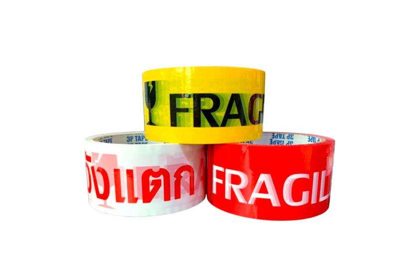 เทปพิมพ์ระวังแตก เทปสำหรับปิดกล่องพัสดุ พิมพ์ข้อความ "ระวังแตก - FRAGILE" บนเทป เพื่อป้องกันสิ่งของเสียหายขณะขนส่ง ติดแน่น ไม่หลุดง่าย เพื่อช่วยลดปัญหาสินค้าเสียหายระหว่างจัดส่ง